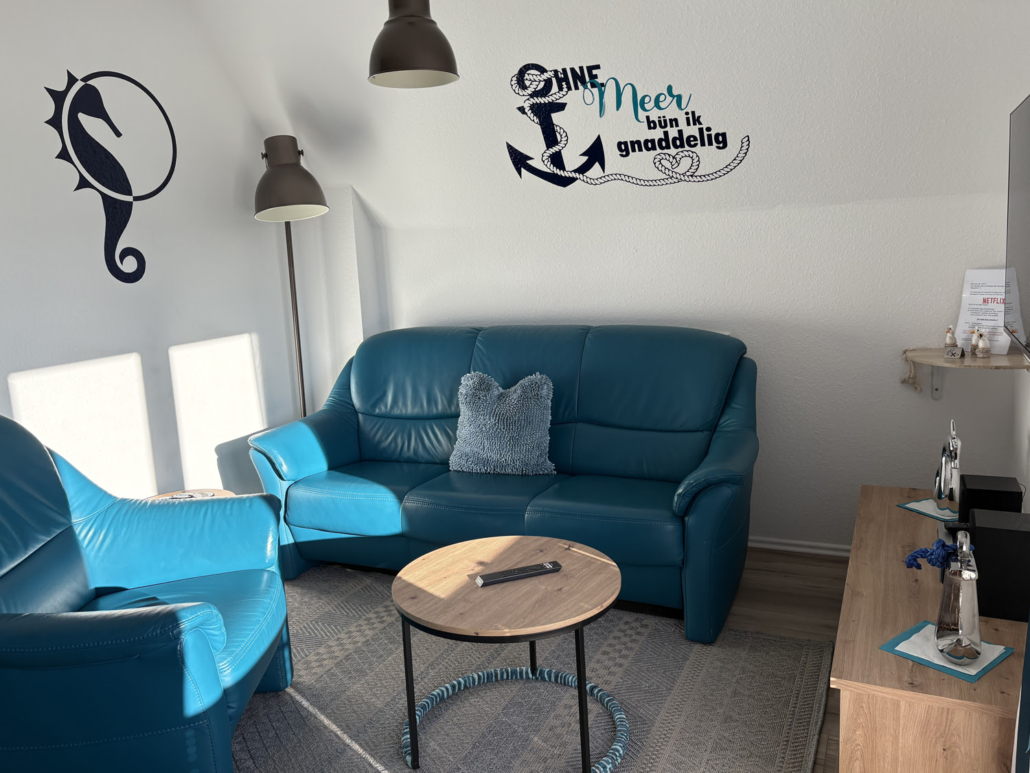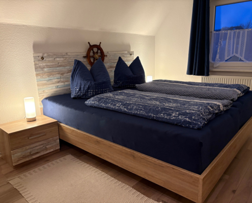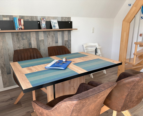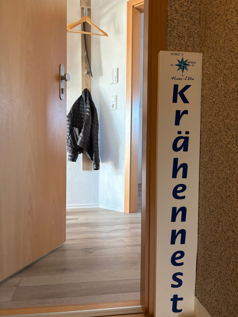 Die 45m²-Maisonette-Wohnung „Krähennest“ liegt im 1. und 2. Stock des Hauses Edda. Die Nichtraucher-Wohnung ist offen, hell und modern gestaltet.